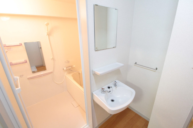 楽器相談可、事務所可、二人入居可、駐輪場あり、温水洗浄便座、洗面所独立、シューズボックス、保証人不要、水道(公営)、ガス(都市)、排水(下水)、バス専用、バス・トイレ別、シャワー、ガスコンロ、コンロ(二口)、エアコン、室内洗濯機置き場、エレベータ有、バルコニー、フローリング、TVドアホン