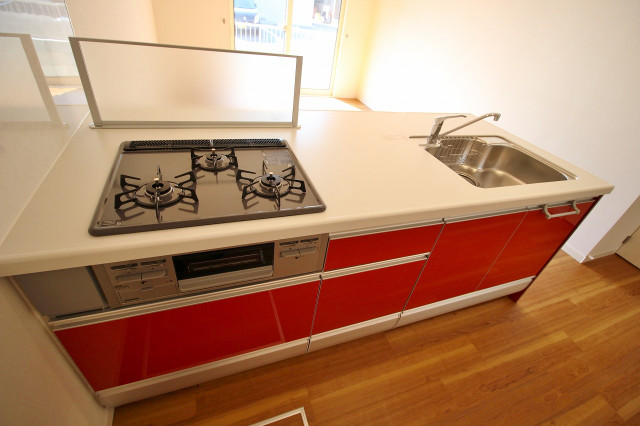 二人入居可、システムキッチン、給湯、追焚機能、シャワー付洗面化粧台、ウォークインクローゼット、専用庭、駐輪場あり、角部屋、温水洗浄便座、カウンターキッチン、浴室乾燥機、洗面所独立、全居室収納、クローゼット、シューズボックス、水道(公営)、ガス(プロパン)、排水(下水)、バス専用、バス・トイレ別、シャワー、ガスコンロ、コンロ(三口)、エアコン、室内洗濯機置き場、バルコニー、フローリング、TVドアホン