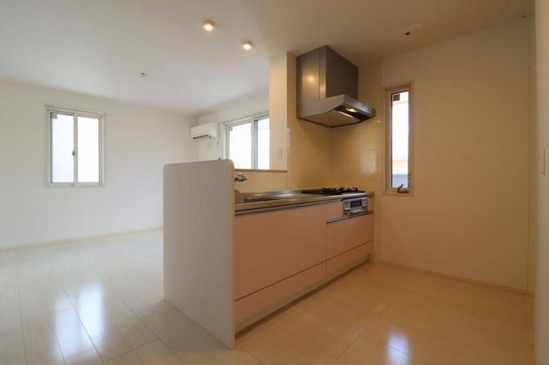 システムキッチン、給湯、追焚機能、シャワー付洗面化粧台、ウォークインクローゼット、BSアンテナ、駐輪場あり、温水洗浄便座、カウンターキッチン、洗面所独立、全居室収納、クローゼット、シューズボックス、保証人不要、水道(公営)、ガス(都市)、排水(下水)、バス専用、バス・トイレ別、シャワー、ガスコンロ、エアコン、室内洗濯機置き場、バルコニー、フローリング、TVドアホン、インターネット使用料無料、最上階、敷金なし