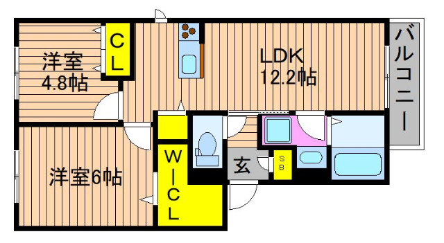 | 共益費:5,000円 | 専有面積:53.79㎡ 間取り詳細:洋室 6帖,洋室 4.8帖,LDK 12.2帖 |