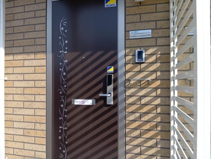二人入居可、システムキッチン、給湯、シャワー付洗面化粧台、床下収納、ウォークインクローゼット、CATV、駐輪場あり、角部屋、温水洗浄便座、オール電化、カウンターキッチン、洗面所独立、保証人不要、水道(公営)、排水(下水)、バス・トイレ別、コンロ(三口)、エアコン、フローリング、TVドアホン、インターネット使用料無料、セキュリティ会社、敷金なし