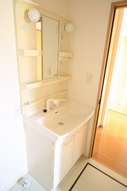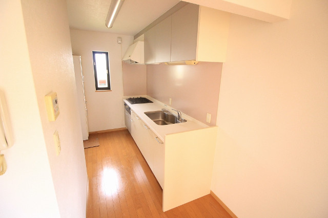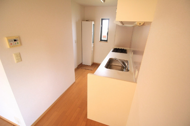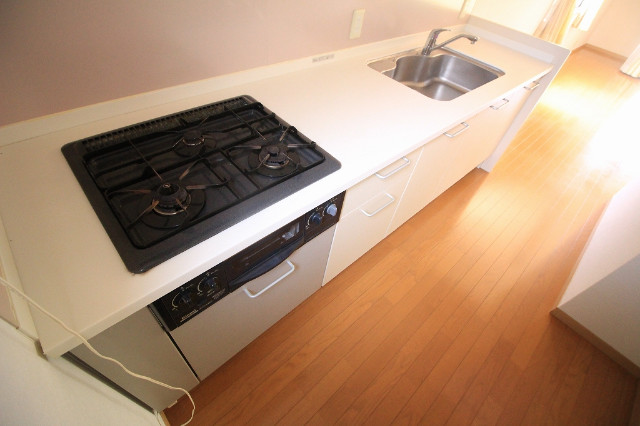 二人入居可、システムキッチン、シャワー付洗面化粧台、専用庭、駐輪場あり、バイク置き場あり、洗面所独立、ペット相談、水道(公営)、バス・トイレ別、シャワー、コンロ(三口)、室内洗濯機置き場、バルコニー、フローリング