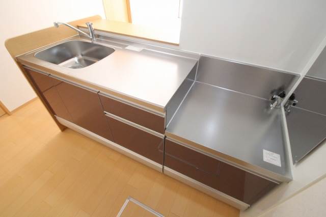 二人入居可、給湯、シャワー付洗面化粧台、駐輪場あり、角部屋、温水洗浄便座、カウンターキッチン、洗面所独立、クローゼット、シューズボックス、保証人不要、水道(公営)、ガス(プロパン)、排水(下水)、バス・トイレ別、シャワー、エアコン、室内洗濯機置き場、バルコニー、フローリング、インターネット対応(光ファイバー)、TVドアホン、最上階、敷金なし