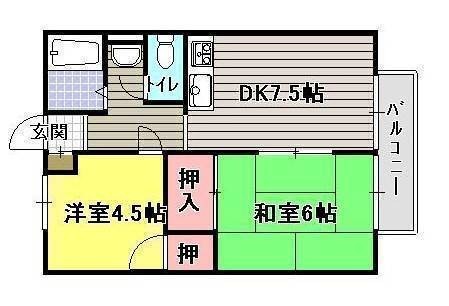 | 共益費:0円 | 専有面積:39.74㎡ 間取り詳細:洋室 4.5帖,和室 6畳,DK 7.5帖 |