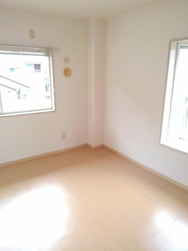 二人入居可、給湯、BSアンテナ、出窓、駐輪場あり、角部屋、温水洗浄便座、洗面所独立、クローゼット、保証人不要、水道(公営)、ガス(プロパン)、排水(下水)、バス・トイレ別、シャワー、エアコン、室内洗濯機置き場、バルコニー、フローリング、TVドアホン、最上階、礼金無し、敷金なし