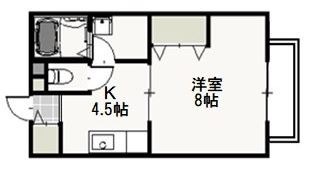 | 共益費:3,000円 | 専有面積:29.8㎡ 間取り詳細:洋室 8帖,K 4.5帖 |