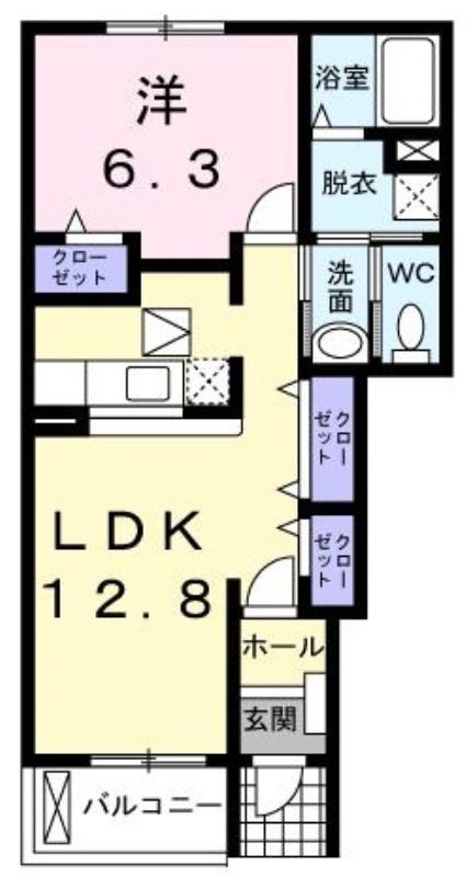 | 共益費:3,300円 | 専有面積:46.49㎡ 間取り詳細:洋室 6.3帖,LDK 12.8帖 |