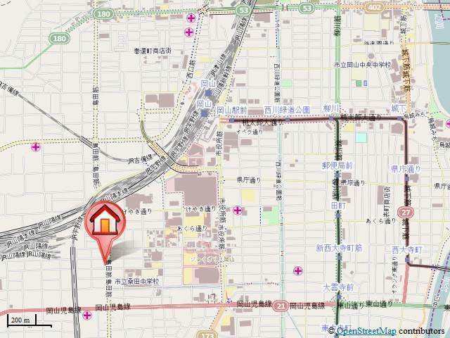 | 交通 | JR山陽本線「岡山駅」徒歩17分 東山線「岡山駅前駅」徒歩18分 JR宇野線「大元駅」徒歩17分 |