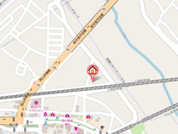 JR山陽本線「西川原駅」徒歩8分 JR津山線「法界院駅」徒歩17分 JR山陽本線「高島駅」徒歩19分 |