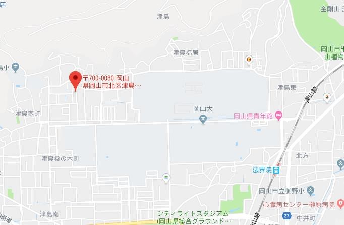 住所は岡山市北区津島福居11丁目になります。
