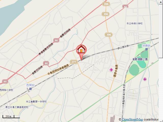 水島本線「球場前駅」徒歩15分 JR山陽本線「西阿知駅」徒歩21分 水島本線「西富井駅」徒歩25分 |