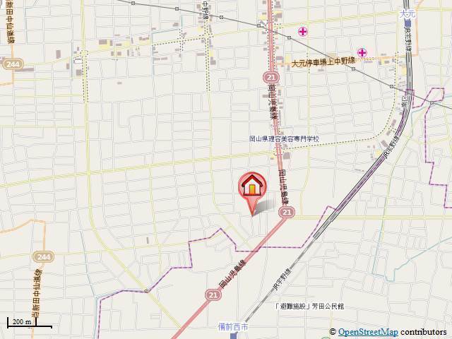 JR宇野線「大元駅」徒歩12分 JR宇野線「備前西市駅」徒歩16分 清輝橋線「清輝橋駅」徒歩26分 |