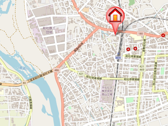 JR伯備線「総社駅」徒歩4分 井原線「総社駅」徒歩4分 JR吉備線「東総社駅」徒歩19分 |