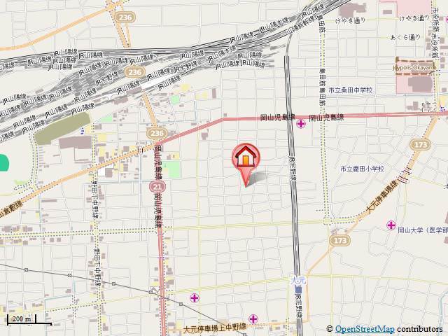 JR宇野線「大元駅」徒歩8分 JR山陽本線「北長瀬駅」徒歩23分 JR山陽本線「岡山駅」徒歩25分 |