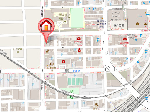 JR山陽本線「岡山駅」徒歩8分 JR伯備線「岡山駅」徒歩8分 東山線「西川緑道公園駅」徒歩17分 |