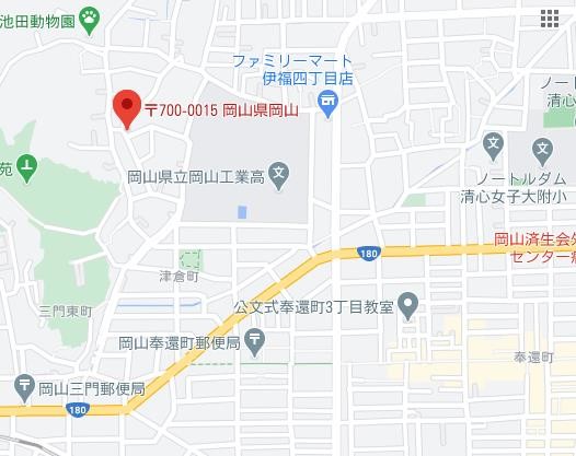 住所は岡山市北区京山11丁目になります。