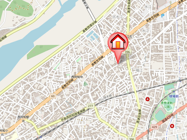 JR山陽本線「倉敷駅」徒歩36分 水島本線「球場前駅」徒歩16分 JR山陽本線「倉敷駅」徒歩分 |