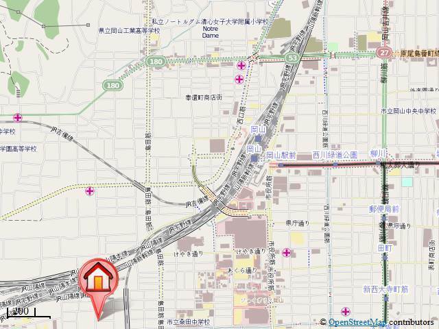 JR山陽本線「岡山駅」徒歩20分 JR宇野線「大元駅」徒歩15分 東山線「岡山駅前駅」徒歩20分 |
