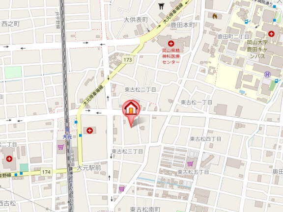 JR宇野線「大元駅」徒歩6分 JR山陽本線「岡山駅」徒歩分 清輝橋線「清輝橋駅」徒歩20分 |