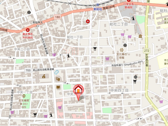 | 近隣情報 | スーパー:プラザ総社店151m ドラッグストア:スーパードラッグひまわり総社中央店211m 郵便局:総社郵便局377m コンビニ:ローソン総社中央四丁目店381m 銀行:トマト銀行総社支店471m 病院:医療法人薬師寺慈恵病院733m |