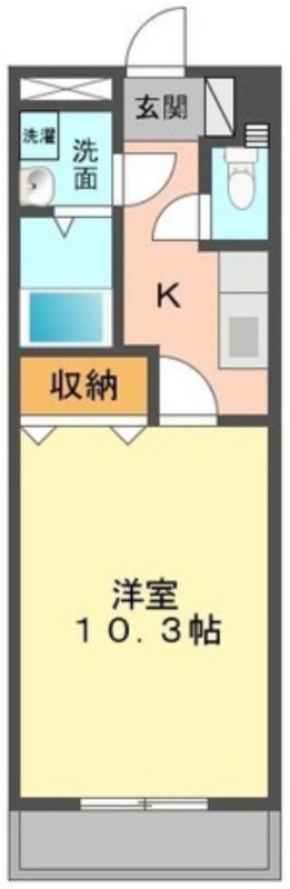 | 共益費:3,600円 | 専有面積:31.02㎡ 間取り詳細:洋室 10.3帖,K 2.5帖 |