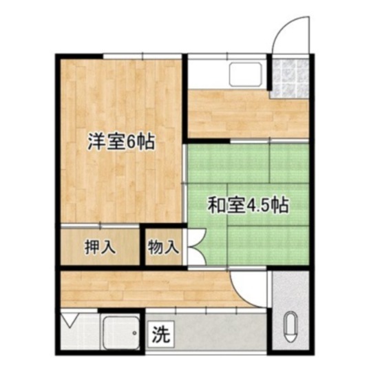 | 共益費:3,000円 | 専有面積:37.07㎡ 間取り詳細:洋室 6帖,洋室 4.5帖 |