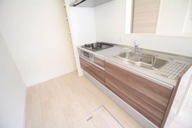 二人入居可、システムキッチン、給湯、追焚機能、シャワー付洗面化粧台、床下収納、ウォークインクローゼット、駐輪場あり、温水洗浄便座、カウンターキッチン、浴室乾燥機、洗面所独立、保証人不要、水道(公営)、ガス(プロパン)、排水(下水)、バス・トイレ別、コンロ(三口)、エアコン、室内洗濯機置き場、オートロック、フローリング、TVドアホン、インターネット使用料無料、敷金なし