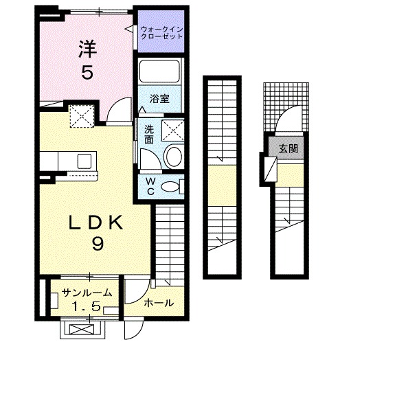| 共益費:2,900円 | 専有面積:44.85㎡ 間取り詳細:洋室 5帖,LDK 9帖 |