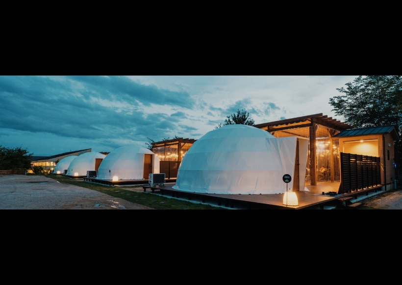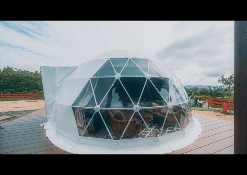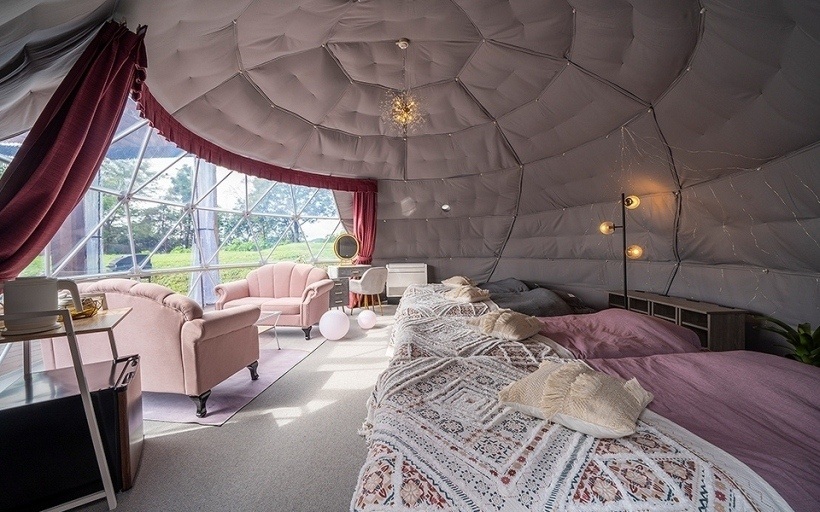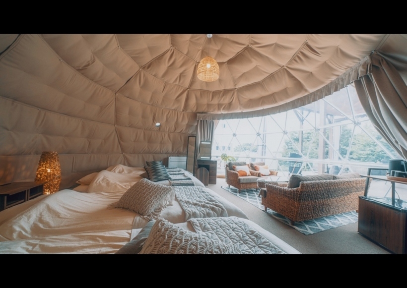 グランピング施設にはドーム状のテントを2種類全7部屋。