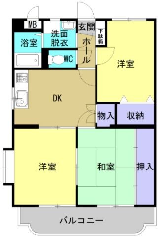 | 間取り・平米 | 3DK 専有面積:61.18 ㎡ |