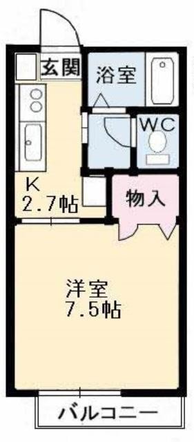 | 間取り・平米 | 1K 専有面積:24.85 ㎡ |