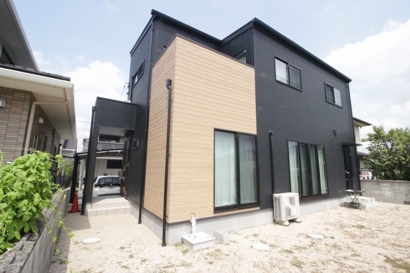 玄関は北側駐車場から側面西側にございます。